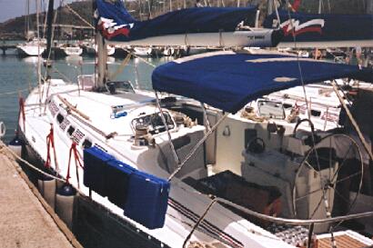 US Flag shown through the Bimini....that ole gal looks great