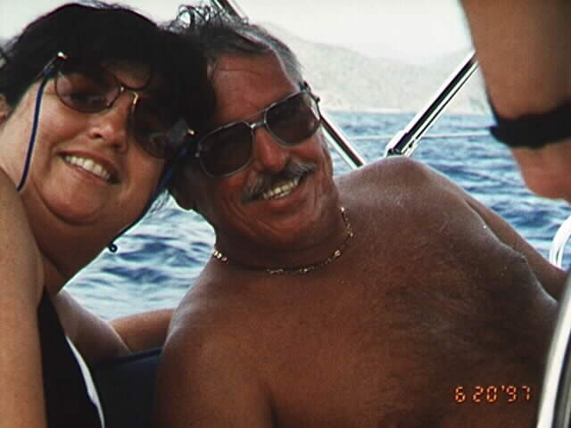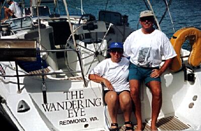 Lynne and I relax. This is a photo of the Bitter End from the
