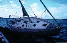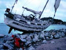 - Boat on the rocks at Simpson Bay. Blown ashore, compliments