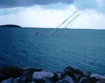The third photo shows a mast out of the water from a sunken vessel at Marigot.