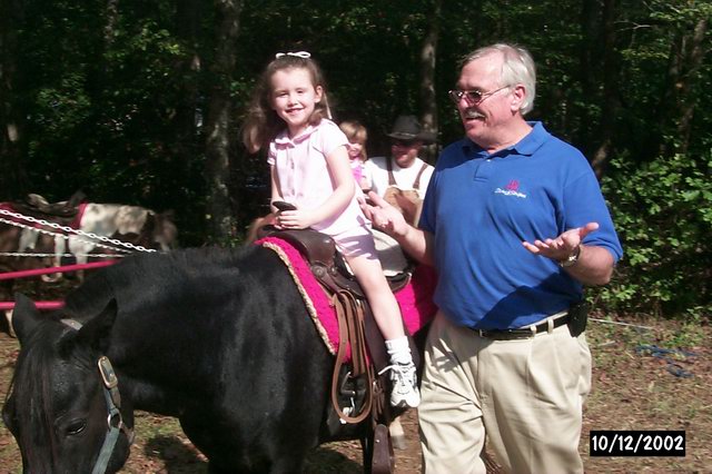 First of three pony rides. Kailey got braver as the day progressed. The white horse, Sweet Pea, was her favorite.