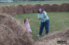 ...and into the circle of hay. They are pretending to be Steve, the croc hunter ... see the big (pretend) snake?