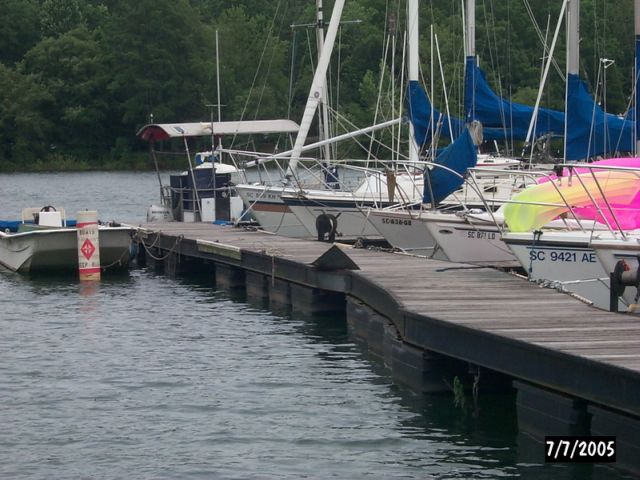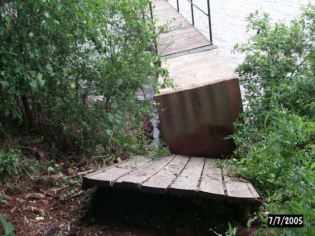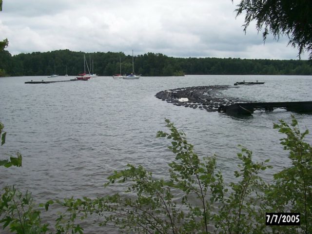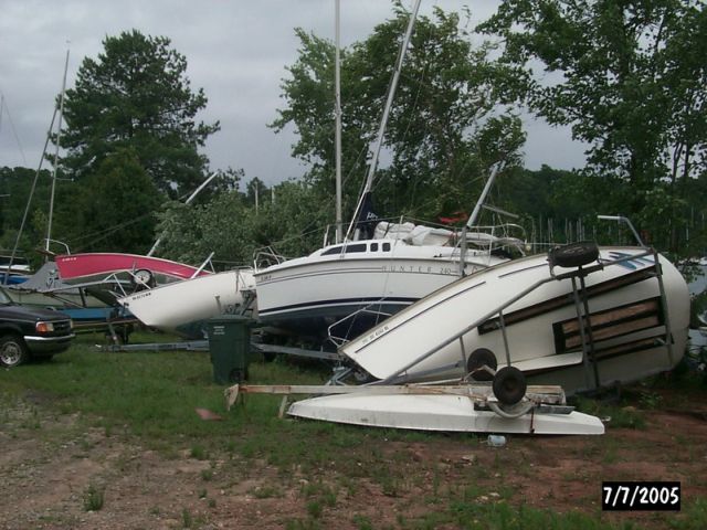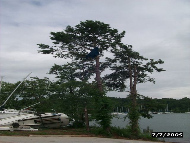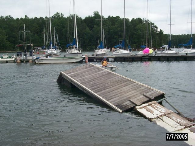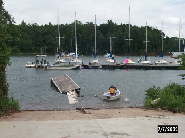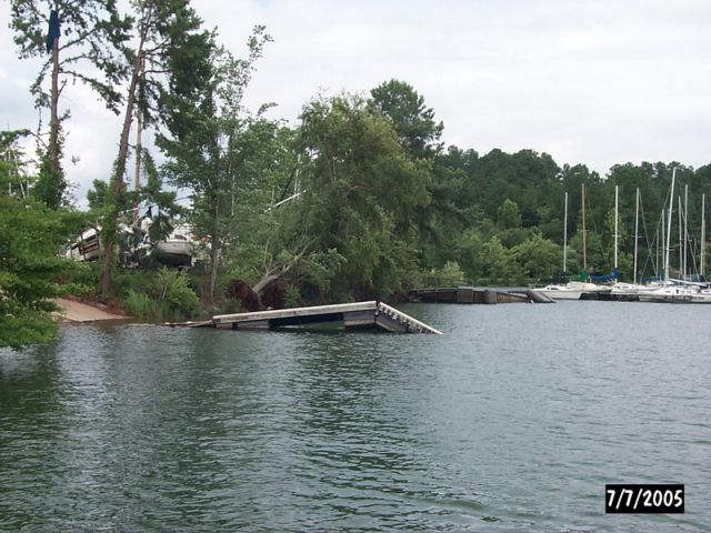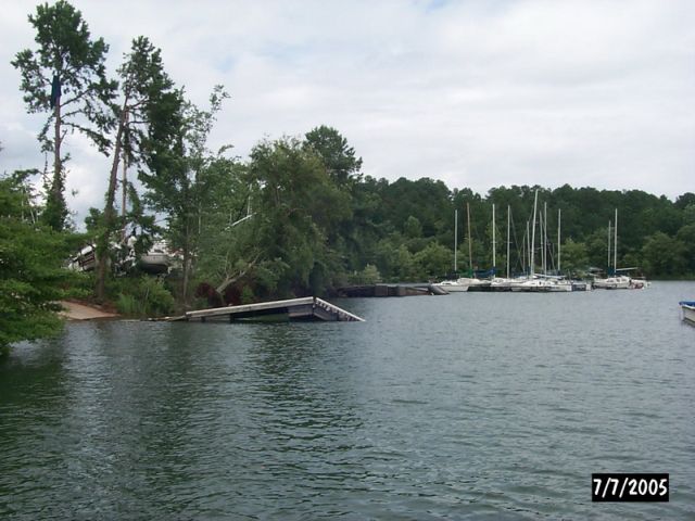 | PAGE 1 of 2 Below are photos of apparent tornado damage to Western Carolina Sailing Club on July 7, 2005 Use navigation bar at left to view other web pages. Click on photo for larger image.